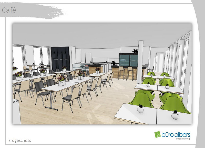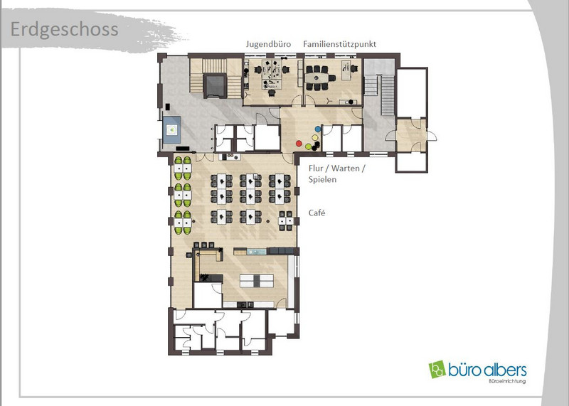Hier wird das Café mit 50 Sitzplätzen und einer großen Küche zu finden sein. Zudem wird das Jugendbüro und der Familienstützpunkt im Erdgeschoss untergebracht.